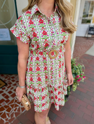 Green Golden Tapestry Button Down Dress